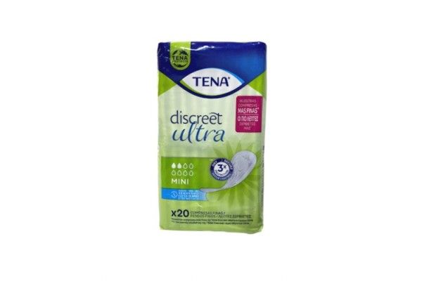 Tena discreet ultra mini es una compresa con la tecnología microProtex que protege frente a escapes, humedad y olor. Es una compresa pequeña y muy discreta pero absorbente para pequeñas pérdidas de orina.