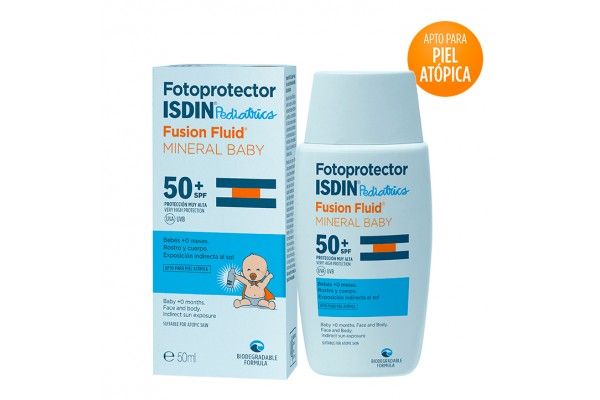 Su textura fluida contiene filtros físicos. Ideal para bebés, a partir de 0 meses. Apto para pieles sensibles y atópicas.